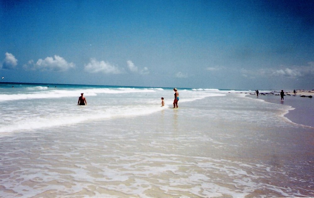 Tirsdag d. 24. oktober 2000 Vi tog til stranden - og hvilken strand. Det er nok den flotteste til dato jeg har set. Det var første gang jeg badede i det Indiske Ocean med tyrkis-blåt og varmt vand. Hvis ikke det var fordi vores plan var så stram så var vi blevet her et par dage. Vi prøvede lidt surf-brædder og andre vandting. Området var kendt for sine kameler og vi så da også nogen rundt i byen. Der var tid til at blive vasket godt, handlet lidt og videre. Vi skulle bare køre for at ta' nogle kilometer. Solen bagede og vi mødte flere døde dyr end bilister. Her i området var jorden gullig og det sås tydelig på de mange termitboer - de skød op overalt. Vi overnattede i Sandfire.