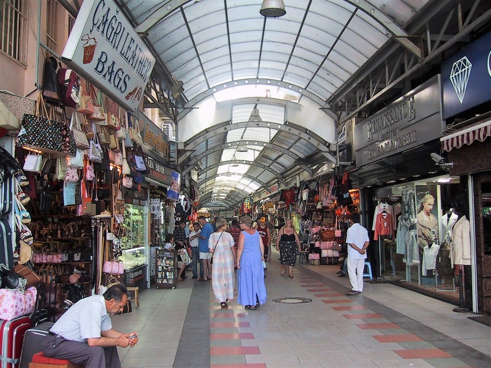 Lørdag d. 25. september 2004Dagens udflugt gik til Marmaris. Jeg havde være i Tyrkiet i 2000, men Erik havde aldrig haft tyrkisk grus under ludo-skoene så rygsækken var pakket med sololie og sodavand. Tidligere var det lidt specielt at rejse mellem Grækenland og Tyrkiet så vi vidste ikke hvor meget kontrol vi skulle igennem - de er vist stadig ikke de bedste venner. Lidt paskontrol, men ikke overdrevet. Det gik for fuld skrue med stinkende dieselmotorer - en heftig stank. Flot indsejling gennem skærgården og vi kom i land. Vi havde 5-6 timer til rådighed så vi tog en pejling af solen og gik mod centrum. Vi startede med at veksle 20 EUR og fik vel små 40 millioner af deres Lira. Så skulle den tyrkiske Burger King prøves inden vi cruisede lidt rundt ved havnen. Vi havde jo ikke tid til for alvor at komme udenfor byen så vi måtte blive i byen som nu efter vores mening ikke var noget særligt. Stranden var ringe og der var fyldt med English Breakfast restauranter og masser af englændere. Vi tog ind til den store indendørs bazar med over 1000 butikker og her var sælgerne oppe på mærkerne. Lidt træls med de nærgående sælgere så vi skyndte os ud. Lystbådehavnen er et kapitel for sig selv - det siges, at det er Europas største og det ku' det være noget om. Der var rigtig mange flotte træskibe fra hele Europa - incl. et sejlskib fra Esbjerg. Der var ingen tegn på stress her - måske man kunne lære noget af det i Danmark. Havneområdet havde stil og her lå de flotte restauranter. Ved færgelejet kunne vi handle lidt tax-free, men der var ikke noget at komme efter. Efter lidt evaluering af turen blev vi enige om at turen ikke var pengene værd - man skulle ihvertfald ha' haft mere end de 5-6 timer for at komme lidt uden for byen. På vejen retur til Rhodos så vi på afstand nogle gevaldige krydstogtskibe så vi glædede os til at komme nærmere. Og vi blev ikke skuffede - det var verdens næststørste skib "Queen Elisabeth II" - kun "Queen Mary" var større på nuværende tidspunkt. Vor kaptajn fortalte lidt om skibet gennem de sædvanlige dårlige højtalere, men skibet var åbenbart så stort at gæsterne skulle sejles i land. Efter en god gang aftensmad i byen og en sidste runde ved Mandraki-havnen var det retur til hotellet efter en lang dag.