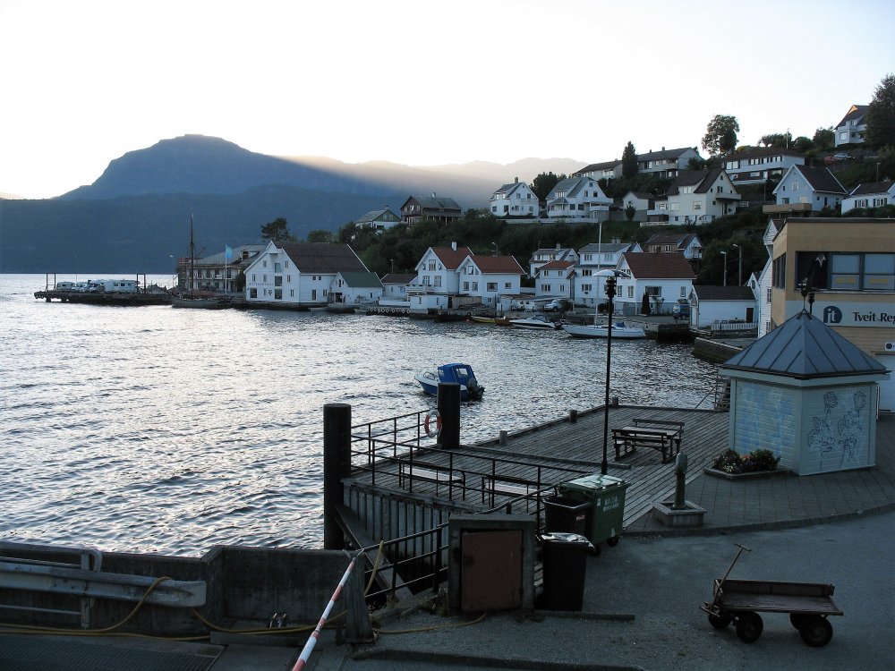 Mandag d. 21. juli 2008Snart blev det lyst og så ku' vi ikke hvile længere. Vi kom forbi Porsgrunn, men for tidlig til at besøge fabrikken. Vi kørte på Nordsøruten - vel deres Margurit-rute. Utrolig flot med masser af små søer, små byer og flotte fjelde. Morgenmaden fik vi ved en lille fin rasteplads ved elven. Fine forhold så vi linede det store morgenkomplet op - super område og dejlig ro. Vi ku' godt mærke vi manglede lidt søvn, så vi ville finde en campingplads ikke alt for sent. Vi blev ret vilde med den fantastiske natur og ku' ta' en masse billeder - og det gjorde vi. Vi havde udset os Flekkefjord - navnet lød godt så vi fandt en plads nede ved søen til 180 NOK - vi kendte ikke helt prisniveauet endnu, men Norge er vist ikke billig. Teltet sku' rejses for første gang. Lidt handel i det lokale supermarked inden Knorr bød på aftensmad - han er altid go. Varm cacao og solnedgang over søen - det er relax inden en velfortjent nats søvn.