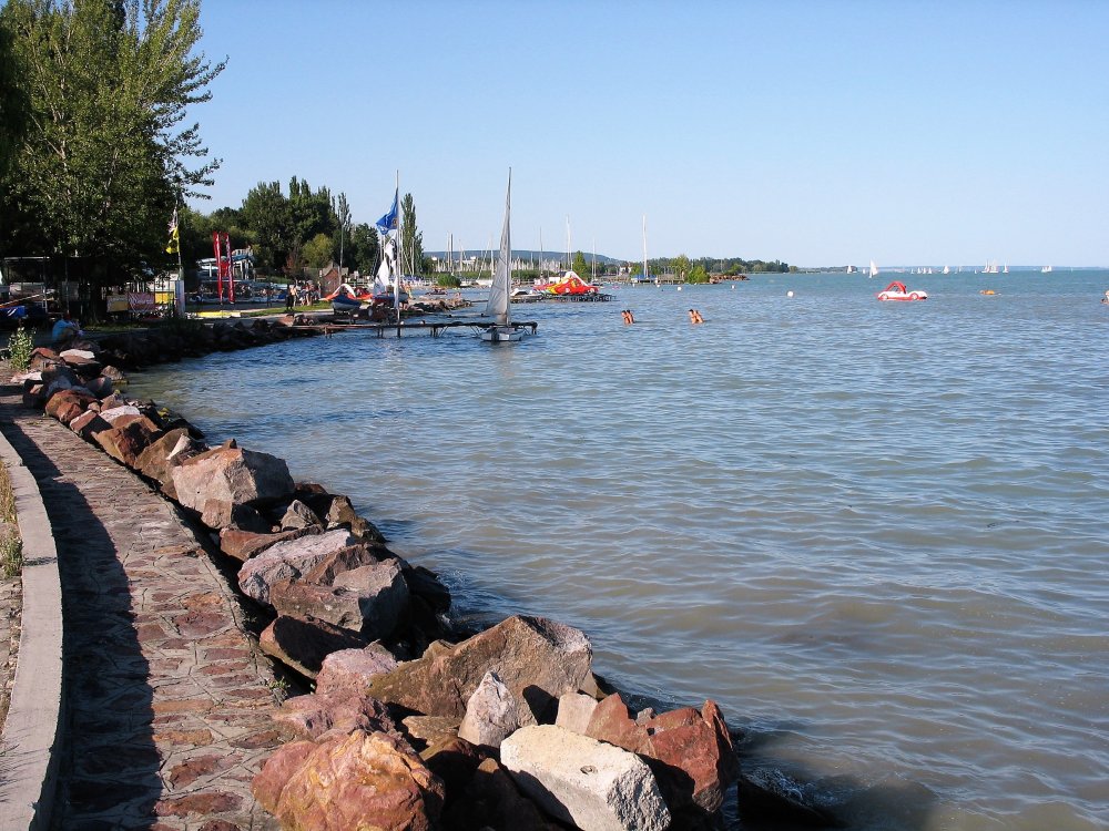 Torsdag d. 23. juli/Fredag 24. juli 2009Det var nu ikke turens bedste sted - lidt spooky personer, så vi checkede tidlig ud. Morgenmaden købte vi ved den lille købmand. Vi passerede Donau som grænse ind til Ungarn så der skulle fotograferes lidt og vekslet til lidt HUF'er hos den lille kineser i skuret. Han solgte alverdens ting herfra. Kørte udenom Györ og mod Debrezen og Balaton. Nu skulle det nye telt indvies. Vi tog den første plads vi mødte i Balatonfüred - en meget fin plads lige ned til søen. Eneste minus var at pladsen var invaderet af danske campister overalt - det var nu ikke lige derfor vi tog på tur, men vi overlevede vel nok. Temperaturen sneg sig op på 33 grader, så der var basis for at dyppe fusserne og ellers finde et sted under nogle store træer med en is. Selvom vi var på camping orkede vi snart ikke at lave med selv, så de 2 dage vi var her blev det på den lille restaurant ved søen. Super anretning til billige penge - turens første Banana-Split. Masser af vandsport på søen, som nærmest var helt grøn. Et meget fint sted, men jeg tror nu ikke, at jeg har tålmodighed til at ligge på sådan en plads i hverken 7 eller 14 dage så det var fint med mig at vi skulle videre i morgen.