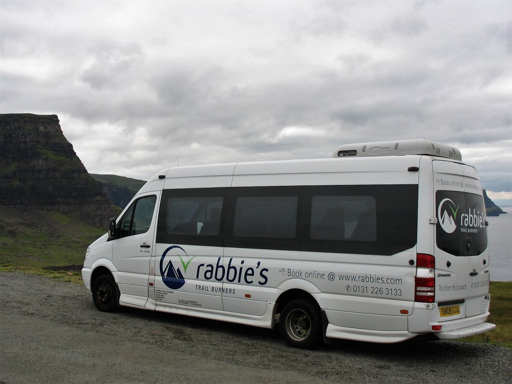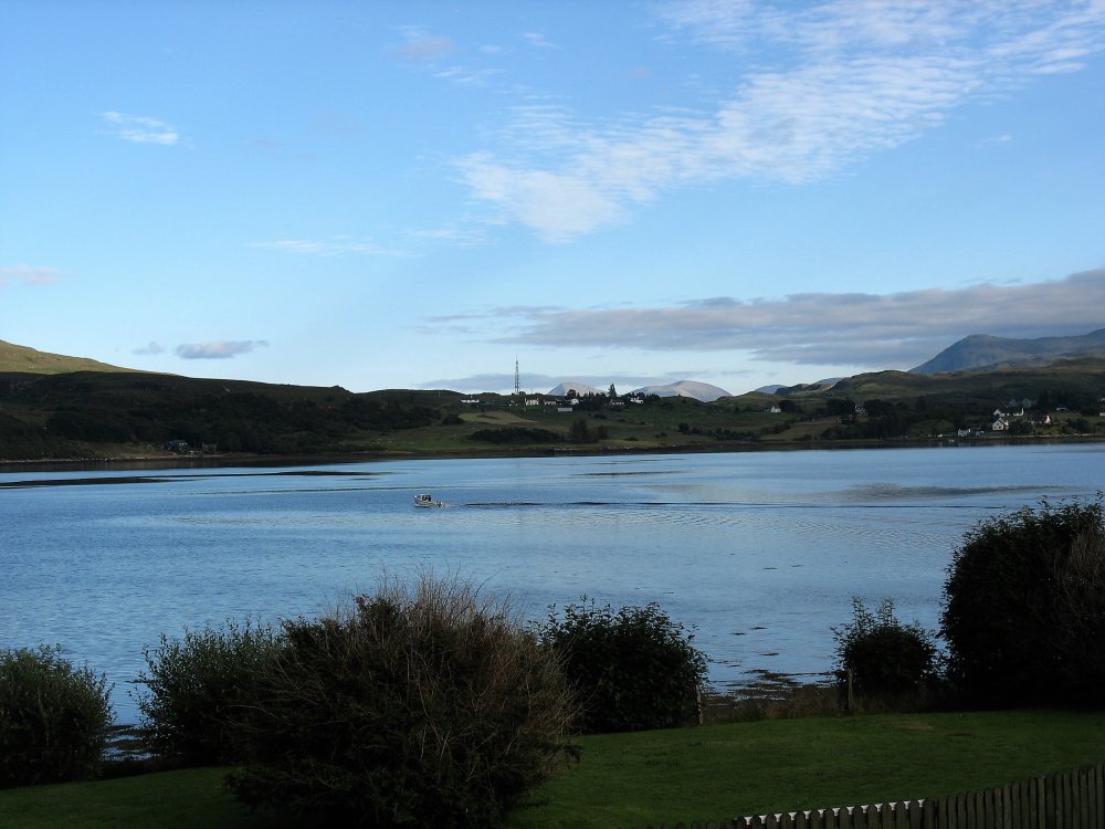 Torsdag d. 29. juli 2010 Der var mødetid kl. 9.00 så morgenmad kl. 8.00 var vel passende og igen udsøgt service fra værtsparret - alt hvad vi kunne ønske os. Pick-up kl. 9.00 og klar med friske batterier i kameraet og kikkert - nu skulle vi på ø-tur rundt på Isle of Skye. Godt med bjerge overalt - passede perfekt til de mange græssende får, som nok var det eneste som kunne græsse her. Få steder finder man så meget flot natur på så lille et sted. Søer og elve i massevis så man bliver helt overvældet af naturen. Vi tog mod Old Man of Storr - nogle flotte klipper som kan ses fra lang afstand. Kursen var sat mod øens vestligste punkt : Neist Point - det glædede vi os til da vi havde læst at der var muligheder for at spotte hvaler. En lille smal vej derud og samme smalle vej tilbage så det er nok ikke tilfældig, at de har lavet en masse vigepladser så bilerne kan passere hinanden. Det ku' godt blive irriterende efterhånden, men hva' vi sku' ku' plages med det et par dage. Fra p-pladsen havde vi en god times tid til at gå på opdagelser. Jeg tog stien helt ud til fyrtårnet - jamen en udsigt og over Atlanterhavet og med de lodrette klipper mod havet, hvor tusindvis af fugle havde deres reder - imponerende. Skotland er jo kendt for sit lunefulde vejr, men vi må ha' haft heldet - vi havde perfekt vejr til sådan en rundtur. Kikkerten var en go' ting her og kort før afgang spejdede jeg ud over vandet og pludselig så jeg en hval bryde havoverfladen. En gang mere og så var den væk. Guiden fortalte det var minke whales (vågehvaler) - et flot syn selv om det var på lang afstand. Vi tog mod bjergpasset Quiraing i noget at Storbritaniens højeste bjergområder. Vi gjorde masser af stop, hvor der var rig mulighed for at skyde nogle fotos og Eddie fortalte historier. Eftermiddagen blev brugt på den nordlige del af øen, hvor vi besøgte nogle små landsbyer og en af deres kirker, der også havde en særlig historie. Vi endte ude på østsiden af øen med udsigt til fastlandet og en ubeskrivelig udsigt over bugten ind til Portree. Det var natur af høj klasse. Hjemme på B&B for at gøre klar til en tur i byen om aftenen. Sonderede spisestederne og endte på MacNab, hvor en god anretning og en øl i baren var noget vi ku' bruge. Vejret var godt så vi cruisede lidt rundt og endte på en lokalpub med noget live music - ikke en hvilken som helst pub, men den hvor Donnie Munro ofte kom forbi. Han bor i byen, men desværre kom han ikke forbi denne aften. Vi faldt i snak med en dansker, som tilfældigvis var havnet i Portree for 1½ år siden, købte sig en båd og tjente til dagen og vejen ved at fiske og sælge fisk til restauranterne. Endnu en fantastisk dag var slut.