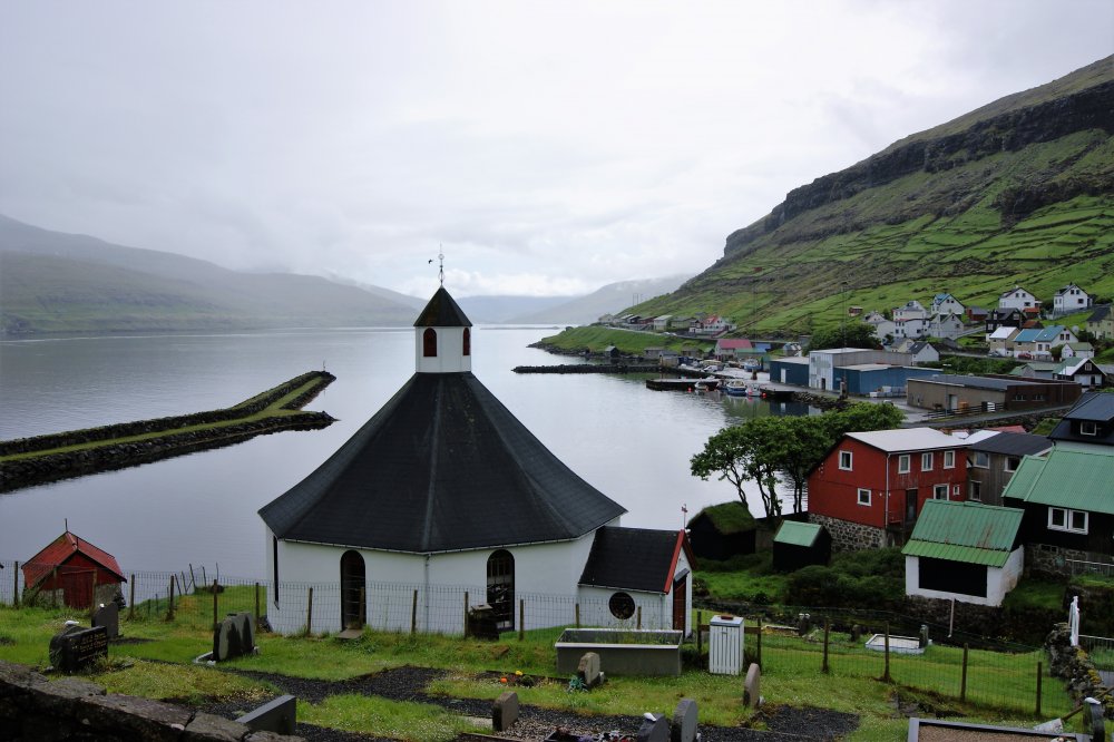 Mandag d. 20. juni 2011Sidste dag på øen og vi havde god tid til at nyde morgenmaden og få pakket vort grej. Fik udveksle lidt oplevelser med de andre, betalt tunnelgebyrer og ellers gjort klar til at køre mod Vagar. Afgang fra Hotel Streym - et lille fint hotel med venlig og hjælpsom personale - der var jo hvad vi havde brug for så topkarakter herfra. Vi ville bruge den sidste halve dag på Vagar. Stadig fint vejr med lidt skyer, men det overlever vi vel de sidste par timer. Tog en afstikker til Oyrarogjogv - en lille flække for enden af vejen, hvor vi lige kunne skimte Vestmanna i det fjerne. I Sandavagur havd fru hørt om en flot kirke så her måtte vi lige forbi. Strøg forbi lufthavnen og vi ville så langt vestpå vi kunne og få et glimt af Mykines. Der var fine veje selvom de blev smallere og smallere - forbi Bøur og gennem endnu en tunnel til Gasadalur - vel nærmest verdens ende. Herfra kunne man ikke komme længere vestpå så efter lidt fotos af området og Mykines var det ved at være slut. Det må blive en tur til Mykines næste gang i håb om at finde søpapegøjer