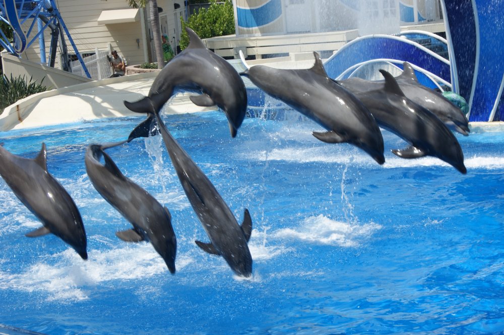 Mandag d. 25 .juli 2011 Idag var det Seaworld-dag - noget jeg havde set frem til. Vi tog vognen derud - $14 for parkering og $80 i entré, men det er jo nok prisen. Folk betaler jo når de nu er kommet herud. Endnu en varm dag i vente så vi havd allieret os med solcreme og solhat. Masser af mennesker så oversigten blev checket så vi kunne nå alle shows. Vi startede med spæghukker/killerwhale showet på den store arena. Det var et tilløbsstykke - ikke uden grund. Det var et show i verdensklasse med de fantastisk dygtige instruktører og de superflotte spækhuggere. Det ka' det altså de amerikanere. Giver ingen mening at forsøge at beskrive shoer - det skal opleves. Folk var ellevilde over disse prægtige dyr, som selvfølgelig sluttede med at sprøjte på publikum i Splash-Zone - sådan skal det jo være. Indimellem kom der også papegøjer flyvende - imponerende. Masser af spændende dyr overalt i flotte omgivelser. Skildpadderne var flotte, søløerne var store og rokkerne i bassinet var sjove. Næste show var søløveshowet - ok, men ikke prangende. Pingvingrotten var også et hit - en masse flotte pingo'er, som vist gik og frøs lidt. De så nu meget spøjse ud når de drønede rundt i vandet. Næste show vi havde planlagt var en af TR's fakvoritter - vi skulle selvfølgelig ind og se delfinshow. Igen var der rift om pladserne og vi tog plads lig uden for splash-zone. Masser af delfiner og knalddygtige instruktører - musik og akrobatik så der manglede intet i et godt amerikanershow. Endnu et show i verdensklasse, som bør opleves. Nu havde vi efterhånden oplevet det meste - vi manglede kun en enkelt ting - noget TR bare ville. Hun ville fodre delfiner og for 7$ fik man en håndfuld fisk og fik lov til at fodre og røre de prægtige dyr. Det var en lang og meget spændende dag i Seaworld og som alle attraktioner var der et vælg af souvenirboder, hvor man ku' købe sig fattig i bamser og anden gøgl. Først på aftenen var det ud i byen og finde et fint lille sted, hvor man ku' få sig en Banana Split. Desværre havde vi spist så meget af hovedretten at vi måtte give op midtvejs i split'en - det er vist aldrig sket før. Aftenen blev afsluttet med en tur i poolen og det udendørs spabad på resortet. Det var lækkert - en helt perfekt dag i Orlando med store oplevelser.