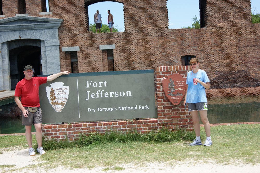 Mandag d. 18. juli 2011Tidlig op - vi skulle jo til tropeøen Dry Tortuga og mødes ved båden kl. 7:15. Båden var ikke helt fyldt så det var helt ok. Vores guide på turen - Chelsea fortalte lidt om dagens program og vå startede med en fin morgenmad ombord så vi havde lige tid til at se de andre gæster an. Sejlturen var på 70 miles og tog ca. 2½ time. Flere småøer undervejs - nogle ubeboede og andre var rene paradisøer med flotte huse og store både. Vi lå på dækket og nød solen og udsigten. Det var nærmest havblik så det var lidt svært at forestille sig, at det var i disse områder at flere orkaner har hærget. Flere af småøerne må helt sikkert ha' været oversvømmet. Dry Tortuga så spændende ud på afstand med den enorme borg som nærmest fyldte hele øen. Vi havde 4 timer på øen. Også idag var her drønvarmt. Var rundt på hele den enorme fæstning - et imponerende bygningsværk helt herude. Der skulle være brugt 16 millioner mursten til projektet. Man havde en ganske god udsigt herfra. Vandflyvere kom flere gange om dagen med de mere magelige turister. Der skulle selvfølgelig også snorkles og bade så vi lånte noget grej. Det var fantastisk flot - ligesom på katalogerne. Vi lå med snuden i vandet og spejdede efter fiskene - vi så fisk men slet ikke som på GBR. En enkelt stor og en masse mindre fisk i farvestrålende farver. Utrolig lækker strand herude. En sidste tur rundt på øen og endnu flere farvestrålende fisk. Frokost ombord, hvor de diskede op med gode sager. Kl. 15.00 var der afgang efter en helt fantastisk dag langt ude i den Mexicanske Golf. En tur man skal ta' på, hvis man er på disse kanter. En tur under bruseren gjorde godt inden aftentur i byen. På vores checkliste stod også et besøg på USA's sydligste punkt. Et populært sted for vi skulle stå i kø for at få taget billeder. Forbi Ernest Hemmingway's hus og ellers lidt shopping inden vi dumpede ind på en hyggelig restaurant med nogle gode nachos og fin betjening. Dejlig bare at sidde og relaxe og se på mennesker i denne festlige by - her ku' vi godt ha' brugt et par dage mere, hvis vi havde tiden. En god nats søvn skulle nydes - vi aner jo ikke hvor vi havner næste nat.