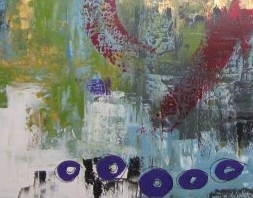 I min fritid - når børnene er lagt i seng - kobler jeg af foran mine lærreder. Her prøver jeg forskellige metoder og farvesammensætninger af. Resultatet bliver ofte abstrakt med små strejf/stregtegninger af figurer, ansigter osv - oftest glade og naivistiske.