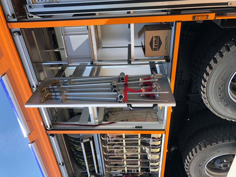 Materielrummene er udstyret med diverse udtræk, hylder, udsvingsplader, holder for reserveflasker og meget mere.