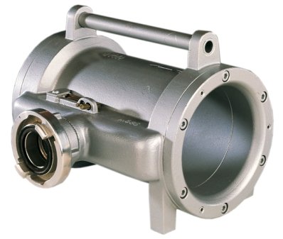 Vandet til spuling kommer fra de to ringformede dyser som er anbragt i hver ende af apparatet.