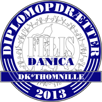12th of November 2017:As I unfortunately have been neglecting the homepage for the last period of time, this weekend have been spend doing a grand make over. The following have been done: Litter 12 - The matematicians have been moved under " Previous litters" Pythagoras has gotten his own page under " Males" Romaine have been moved under " Neuter females" Romaine have been listet under " Gallery of Ancestors" " Plans" has been up dated " Show" has been up dated with future shows, previous shows and the latest show results from World Show Cause we have been at World Show in Rijswijk, The Netherlands and have obtained the following results: Primrose: EX2 (of 3) Dana: CAPIB (now IP and moving to class 5) Cecilia also attended with DK*Thomnille's Peeta who obtained the following results: Peeta: CAGPIB 21st of September 2017:A new round of pictures of the kittens have been up loaded. 7th of September 2017:A new round of pictures of the kittens have been up loaded. 2nd of September 2017:Finally pictures of the kittens have been up loaded. Take a look under " Kittens". 18th of August 2017:Romaine and her two kittens are doing very well. The kittens have been named after famous matematicians. I have had them photographed twice, but it will be a while before the pictures will be up loaded. Pythagoras is being evaluated for breeding 26th of July 2017:At the 13th of July Romaine gave birth to her second litter; two handsome boys. More info later. 18th of June 2017:A great thanks to Lotte who picked up and brought back Primrose fore the Maine Coon Championship in Vejle and to Eva who took care of Primrose at the show. It went very well: Primrose: CAGCIB, BIV, NOM 8th of April 2017:We have been at show in Aarhus at the 1st of April, and have obtained the following results Dana: CAPIB, BIV, NOM, judge Katia Poccis best MCO Primrose: CAGCIB, NOM, BIS, BOB5 At the same show Cecilia brought DK*Thomnilles Peeta and Lotte brought DK*Thomnille's Samvise who obtained the following results: Peeta: CAGPIB Samvise: HP, BIV, BOX, Judge Bette Linds best MCO Sunday the 2nd of April: Samvise: HP, BIV 13th of February 2017:Nothing have happend for quite a few months now... I have had a really hard pregnancy, and have had a hard time just coping with my every day life. Therefore the homepage hasn't got prioritised. Sorry! But finaly, at the 8th of December 2016, our lovely Valdemar was born. It took a while to get used to having three children, but it's wonderfull to 'have my body back' so I have been doing all the things I missed during my pregnancy; amongst other things I have been at a show my self for the first time in a year. Now - finally - it's time to 'nurse' the homapage a bit. Over the next weeks a lot of small things is going to be up dated.