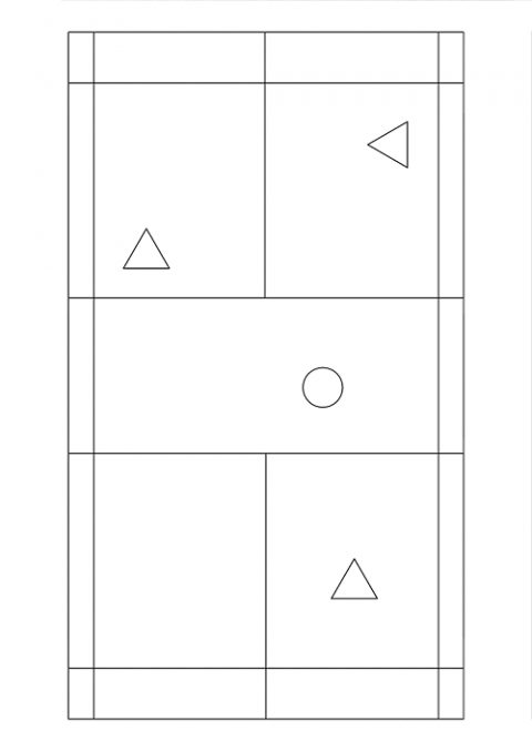 4 spillere på en badmintonbane og 1 tidtager (træner)