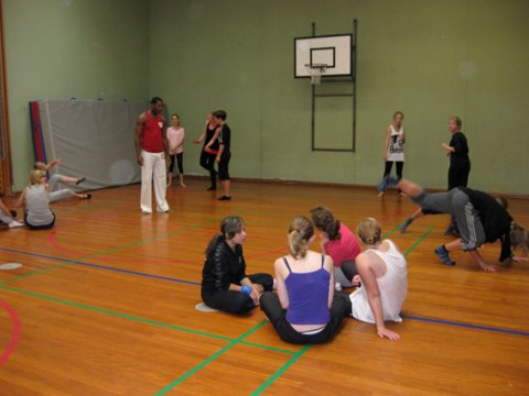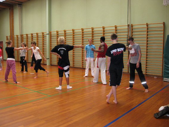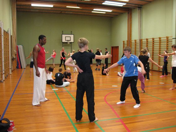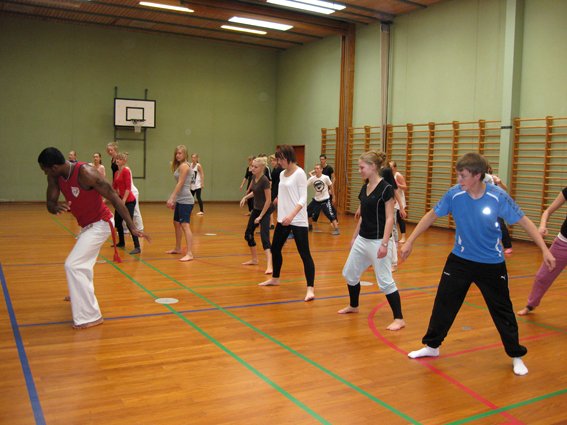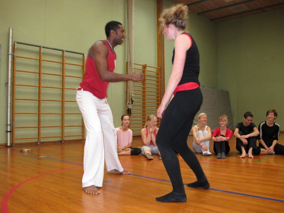 instruktørmøde hvor vi prøvede kræfter med capoeira'en