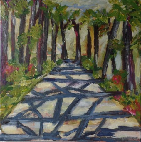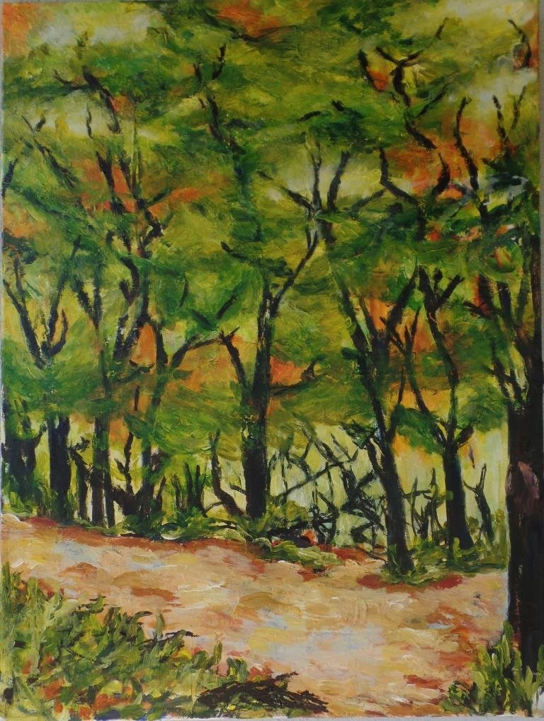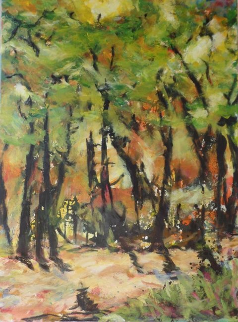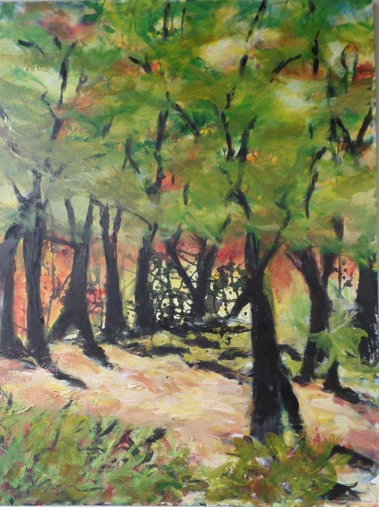 Syrenhegn ved vejen. 50 x 50 cm. Solgt. |  Ændret 2022! Skov 4 - Rewilding. 50 x 50 cm. |  Sommerkrat 3. 60 x 80 cm. |