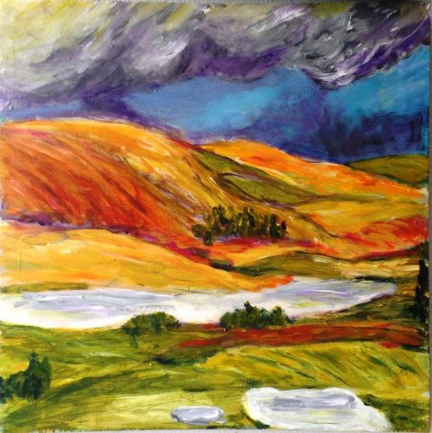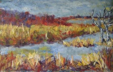 |  Mer sump. 80 x 60 cm. Værket blev antaget til den censurerede Bjerringbro Udstilling i 2014 |  Mols - Land 1. 70 x 90 cm. Solgt. |