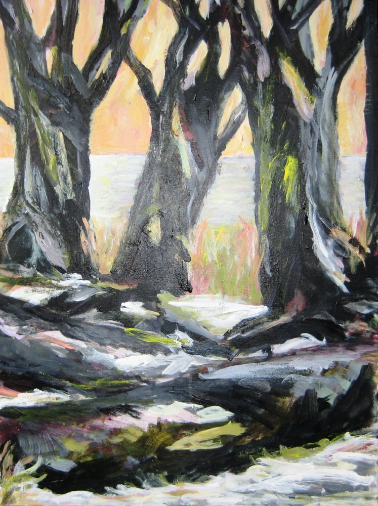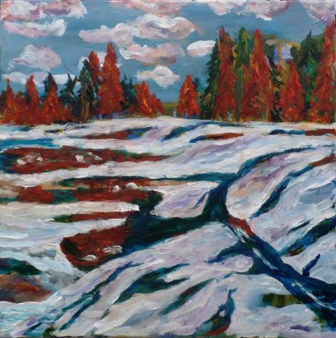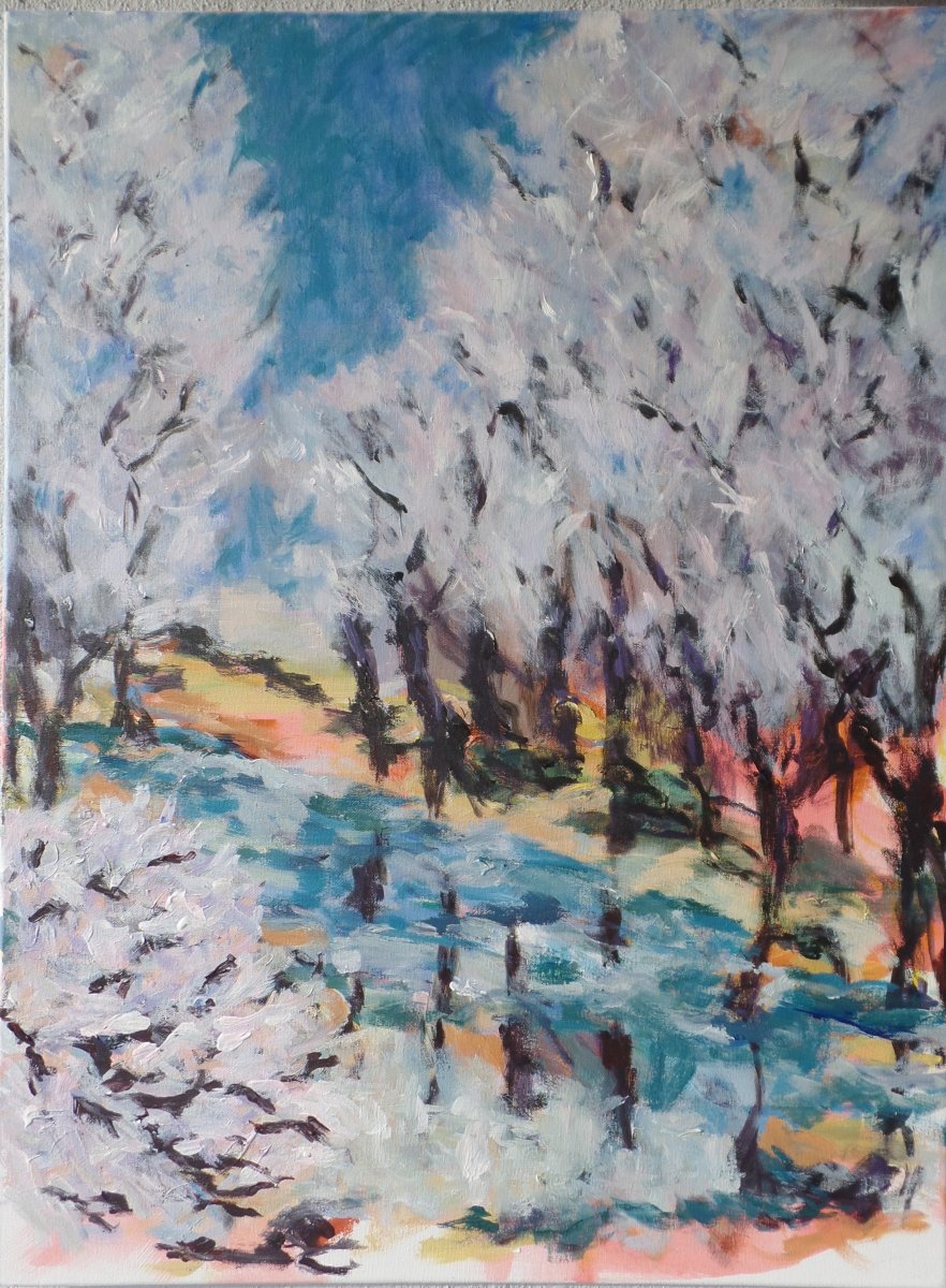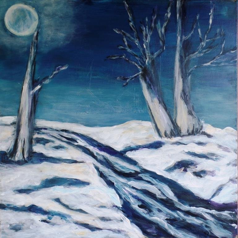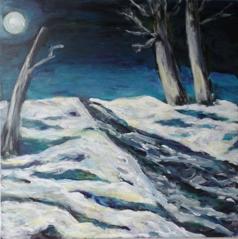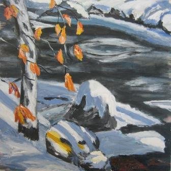 Å med stammer. 70 x 50 cm. Solgt. |  |  Stille vinter. 60 x 80 cm. Solgt. |
