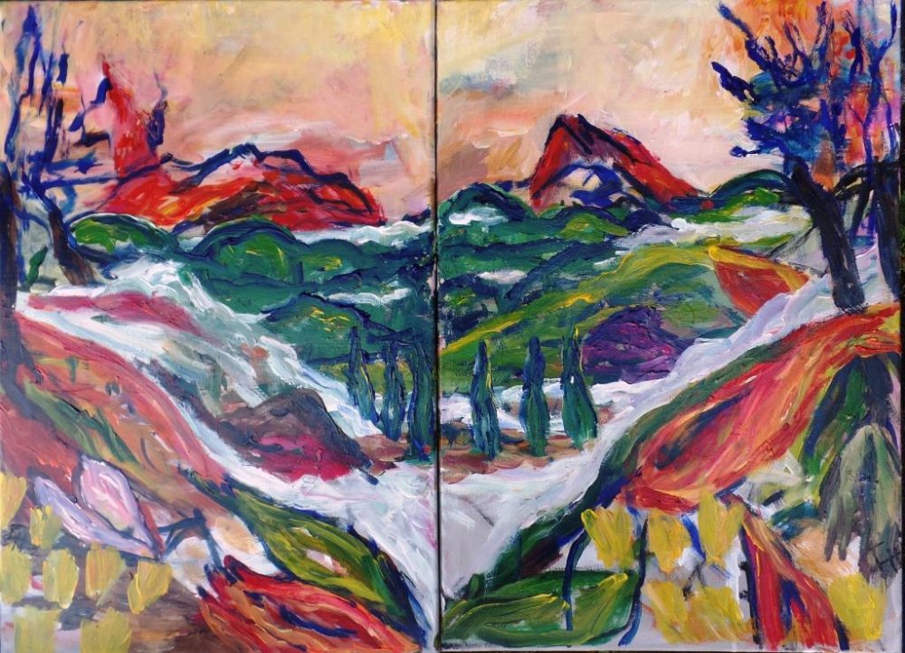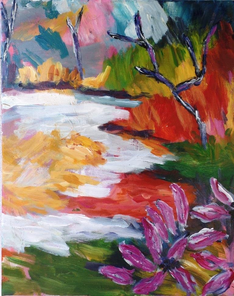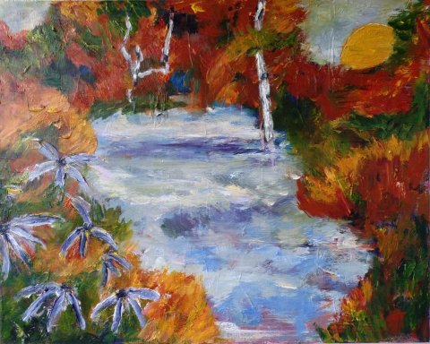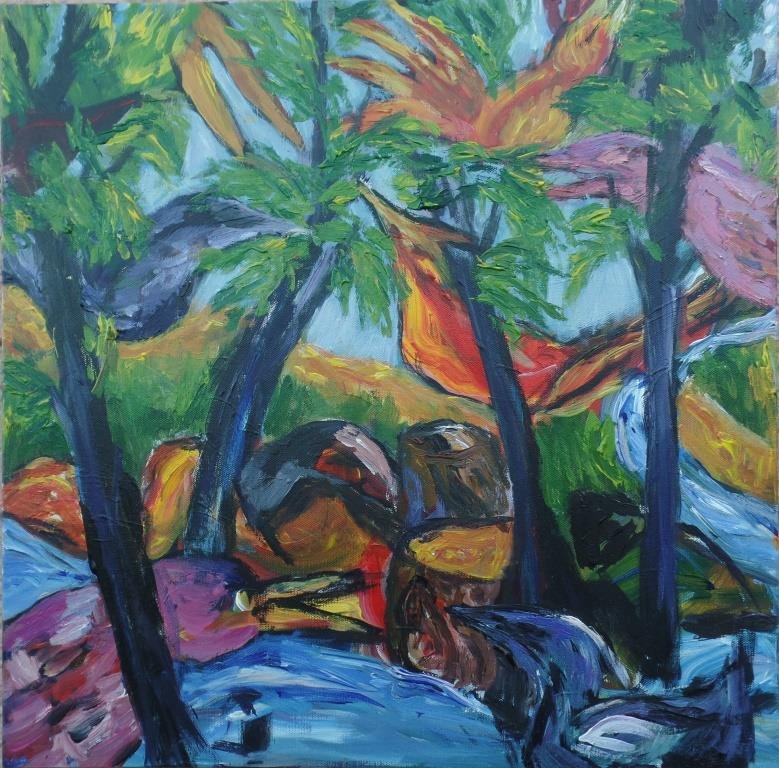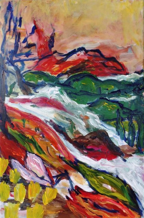 Efterårskrat 2. 60 x 80 cm. |  |  Åen 2. 50 x 40 cm. Solgt. |