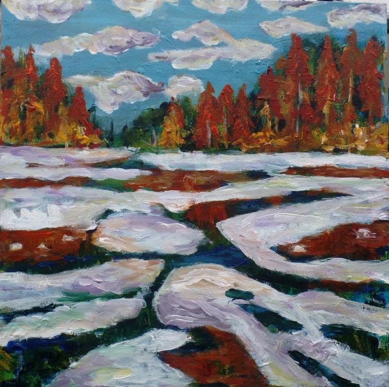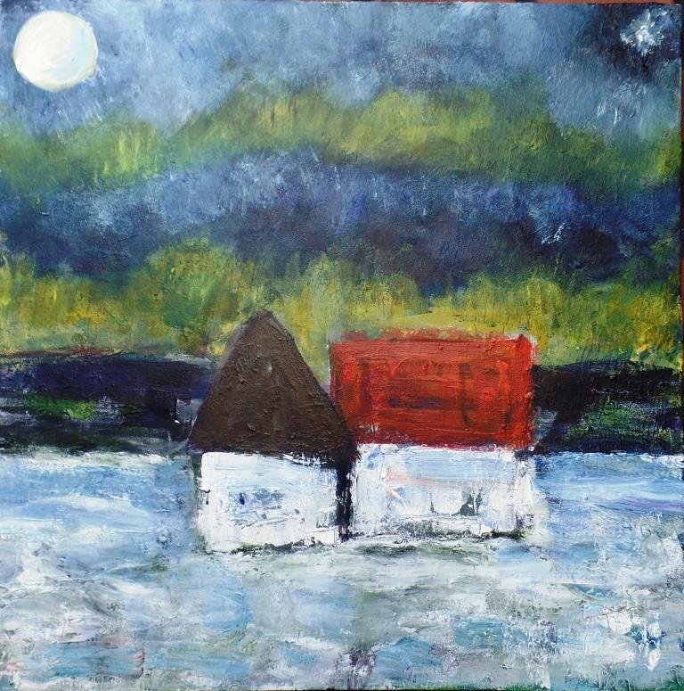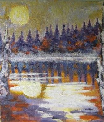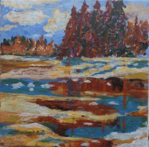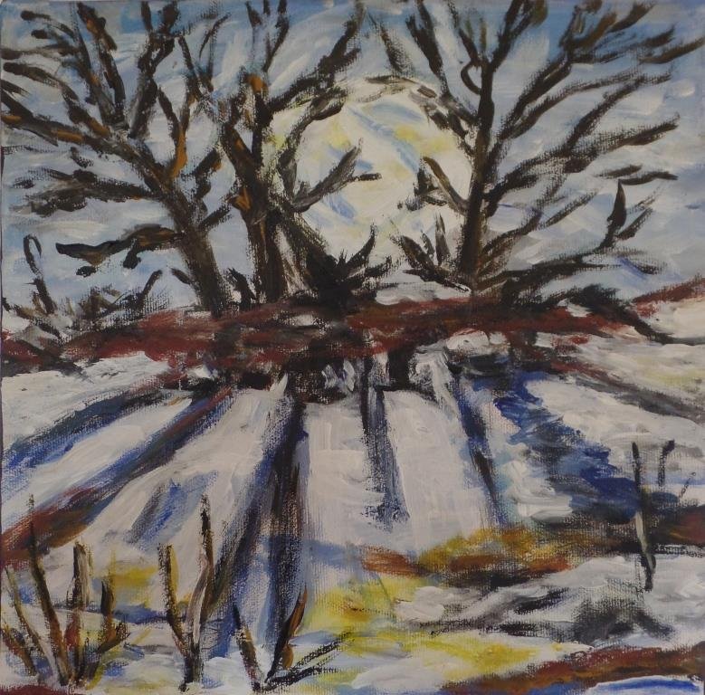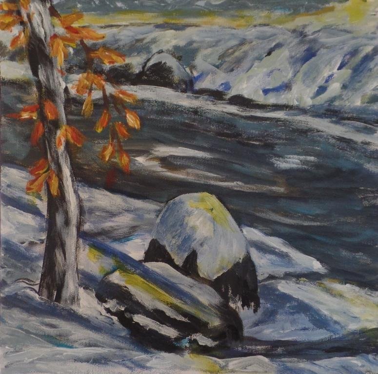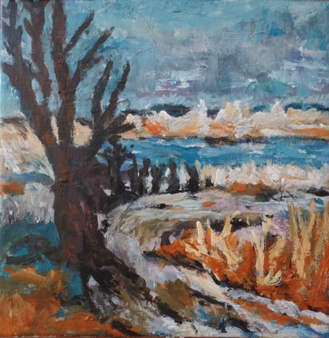 Vinter ved søen. 30 x 30 cm. |  Vinter ved åen. 30 x 30 cm. Solgt. |  |