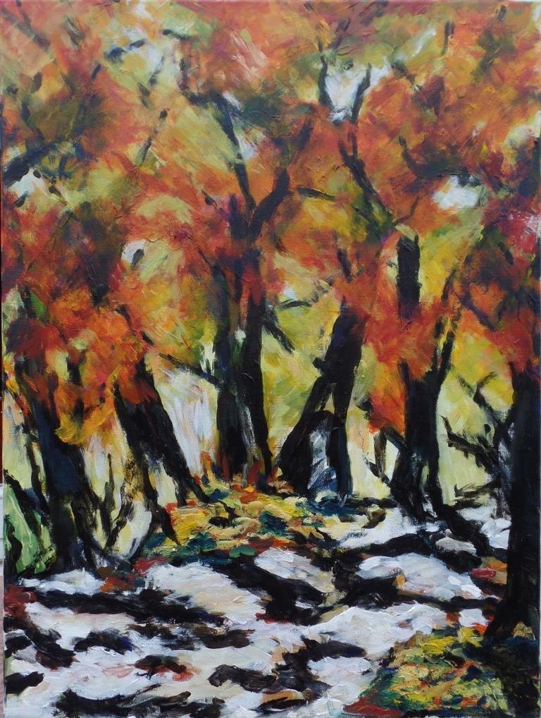 Åbred. 60 x 60 cm. Solgt. |  Åbred 2. 60 x 60 cm. Solgt. |  Efterårskrat 1. 60 x 80 cm. Solgt. |