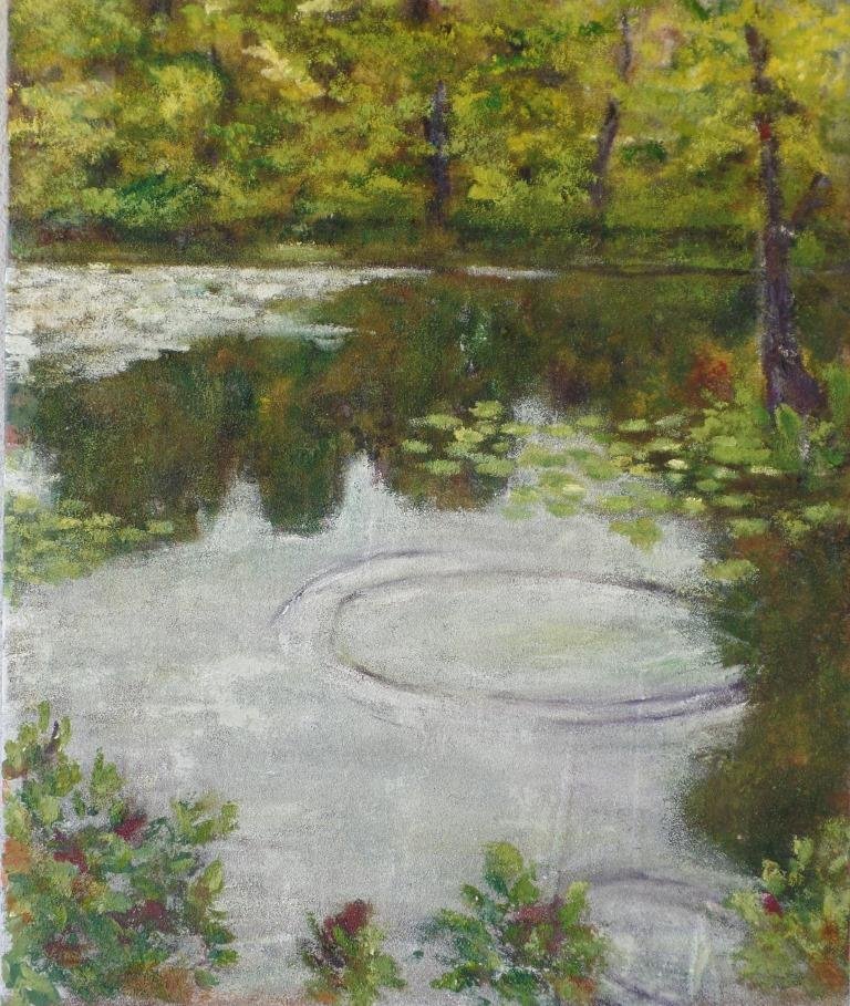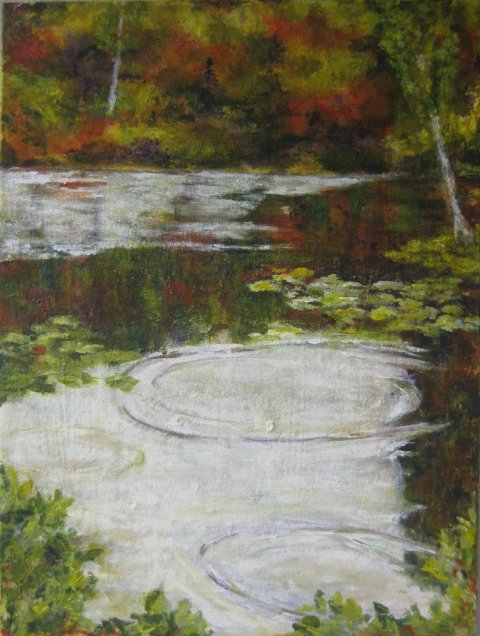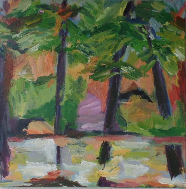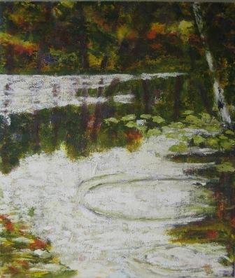 Pause. 50 x 50 cm. Solgt. |  Skov 5. 40 x 40 cm. Solgt. |  Ringe i vandet. 58 x 70 cm. Solgt. |