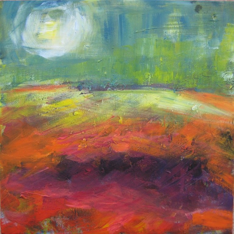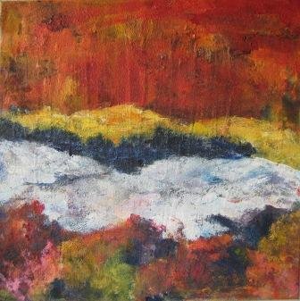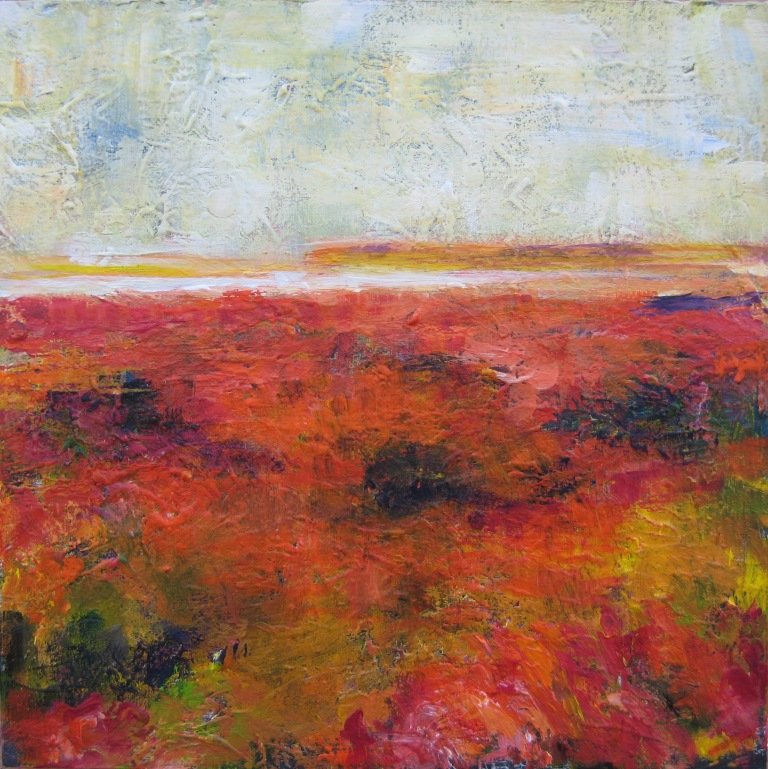 De røde enge - nat. 40 x 40 cm. |  De røde enge 1. 40 x 40 cm. Solgt. |  De røde enge 2. 40 x 40 cm. Solgt.