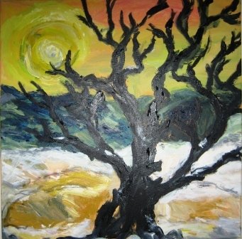 Vejtræ 2. 24 x 30 cm. Solgt. |  Vinterå. 60 x 60 cm. Solgt |  |