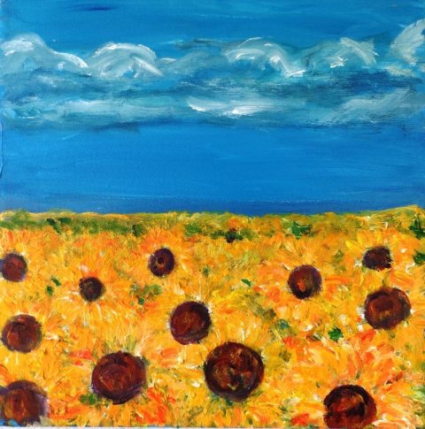 Raps ved vigen. 60 x 60 cm. |  Solsikkemark. 30 x 30 cm. |  |