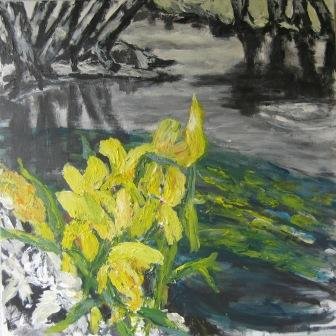 Træ i mindre format 2. 40 x 40 cm. Solgt. |  Iris på spring. 60 x 60 cm. |  Åkande 1. 60 x 60 cm. Solgt. |