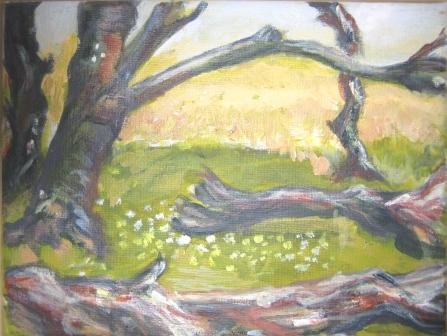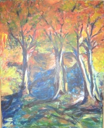Kalø. 60 x 70 cm. Doneret til Kirkens Korshær Galleri, Hornslet. |  Faldne stammer. 50 x 60 cm. Solgt. |  Efterårstræer. 40 x 50 cm. |