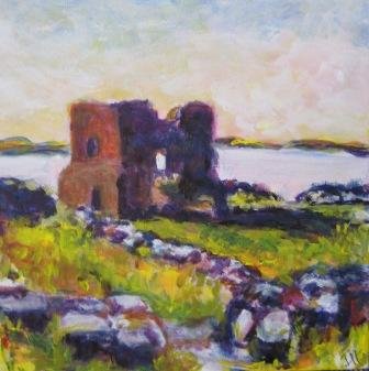 Lille syrenhegn. 30 x 40 cm. Solgt. |  Kalø Slotsruin. 30 x 40 cm. Solgt. |  Knebel Kirke. 30 x 30 cm. Solgt. |