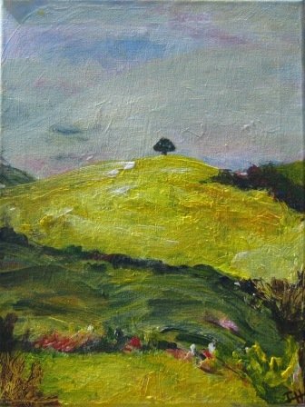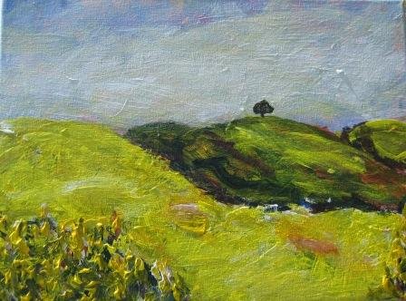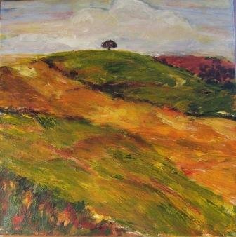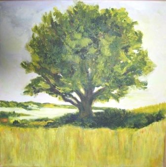 Våde Mols-marker i marts. 57 x 57 cm. |  Træet på toppen - sommer. 30 x 30 cm. Solgt |  Træet på toppen - forår. 30 x 30 cm. Solgt |