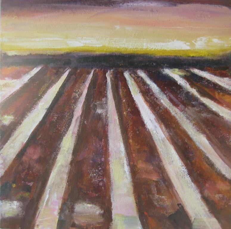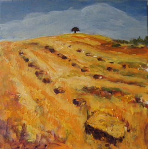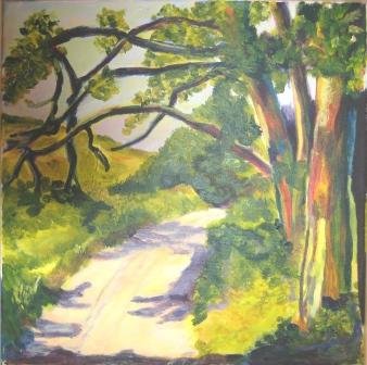 Rolsø 3. 40 x 40 cm. Doneret til Kirkens Korshær Galleri, Hornslet. |  |  Raps på Porskærvej. 40 x 30 cm. Solgt. |