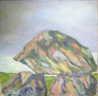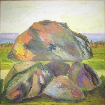 Raps på Mols. 30 x 40 cm. Solgt. |  Porskjær Stendysse. 50 x 40 cm. Doneret til Kirkens Korshær Galleri, Hornslet. |  Molshoved. 50 x 40 cm. Solgt. |