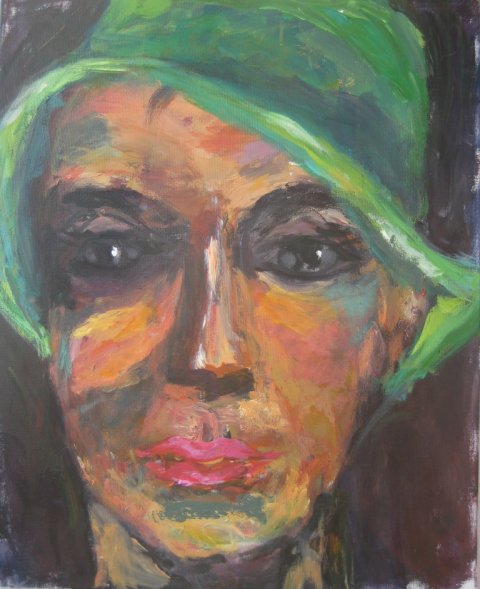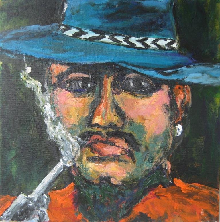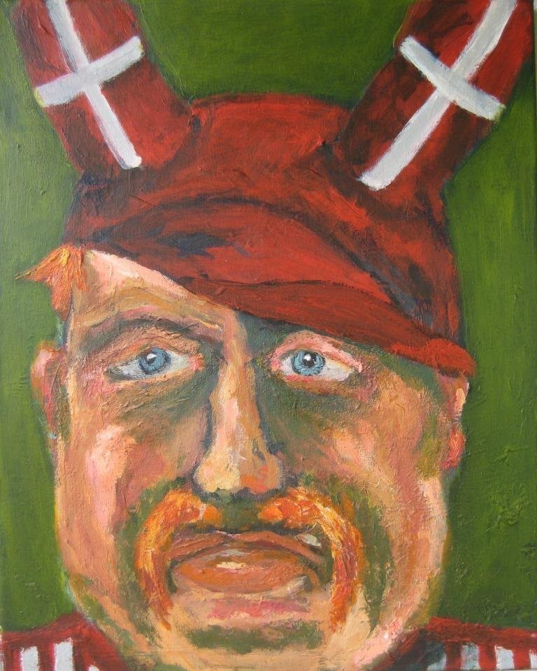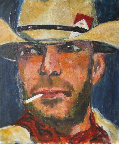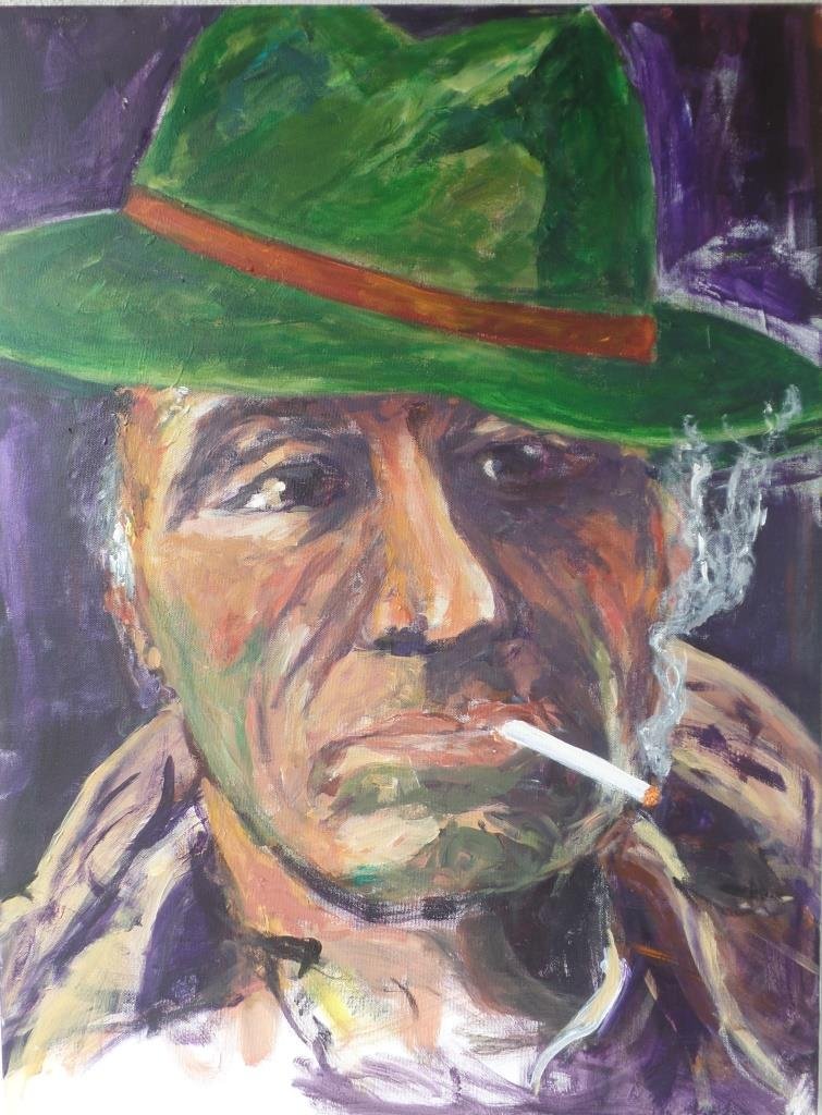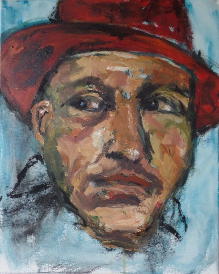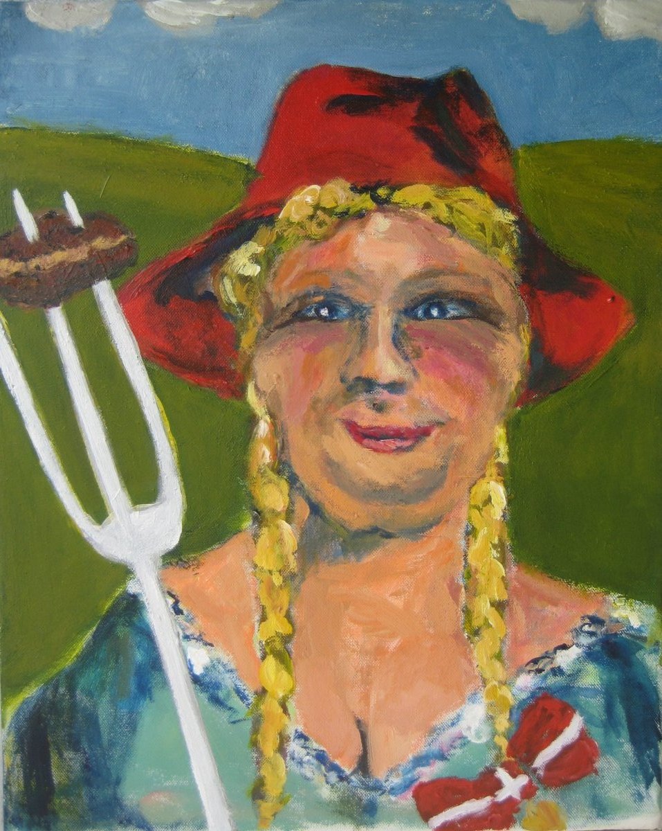 The frikadelle-woman. 40 x 50 cm. Værket blev antaget til Tørring-Uldum Kunstforenings Censurerede Udstilling 2016. Solgt. |  Klaphat. 40 x 50 cm. Værket blev antaget til Tørring-Uldum Kunstforenings Censurerede Udstilling 2016. |  Marloboro-manden. 50 x 60 cm. |