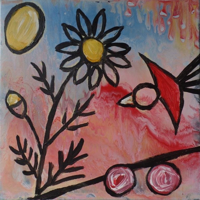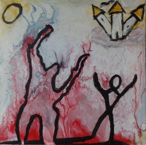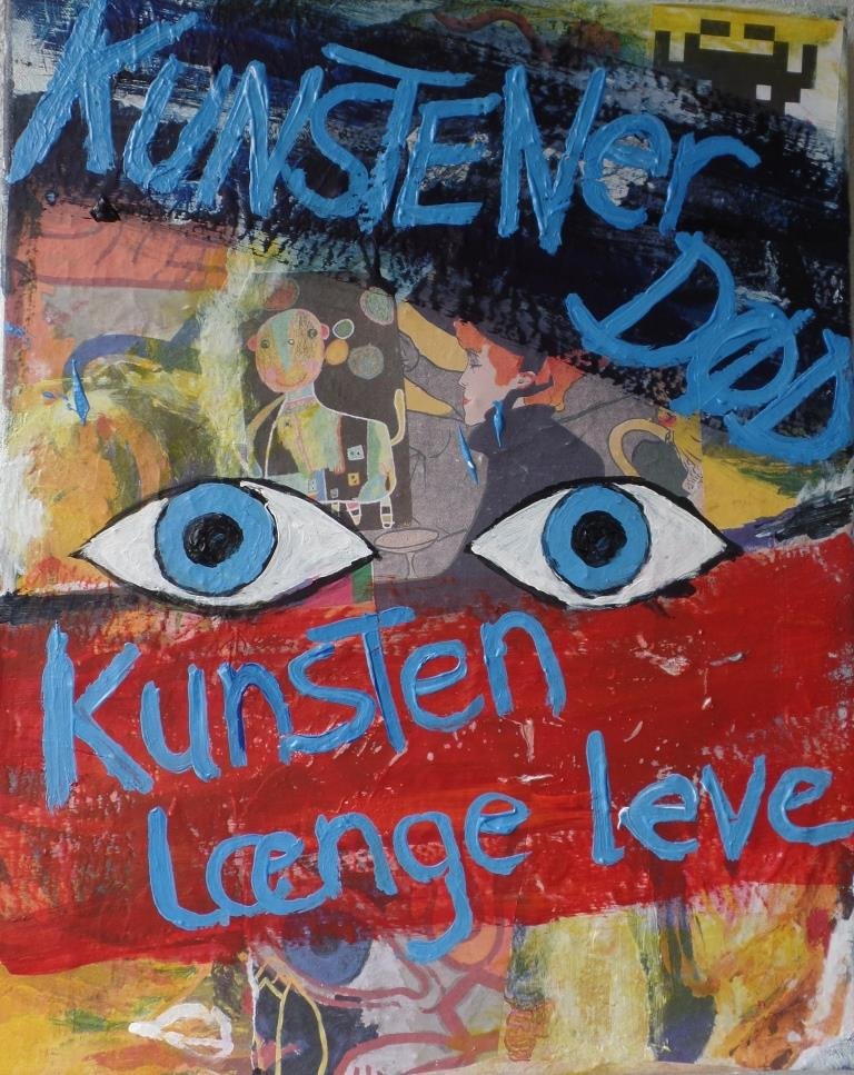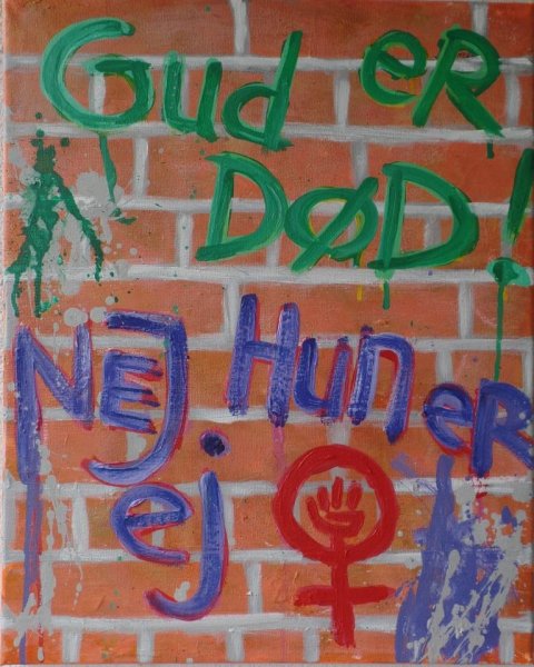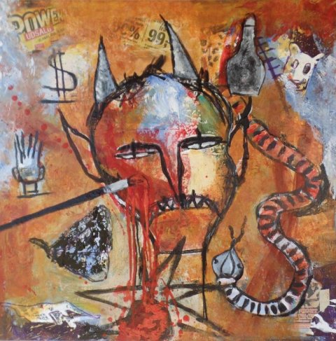 Kunsten er død. 40 x 50 cm. |  |  Male Fanden på væggen. 65 x 65 cm. Solgt. |