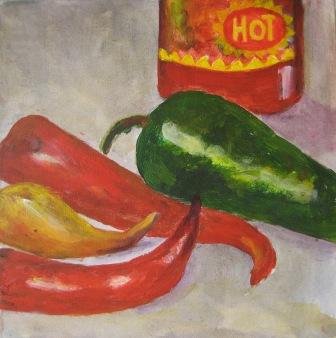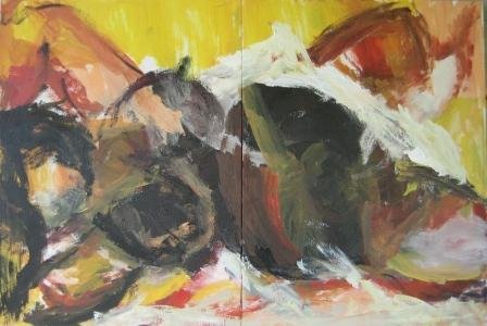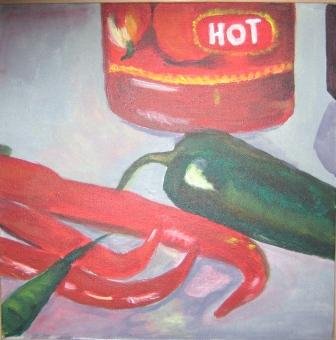 Chili. 40 x 30 cm. Solgt. |  To må man være 2. 60 x 70 cm. Solgt. |  To må man være. 70 x 60 cm. Solgt. |