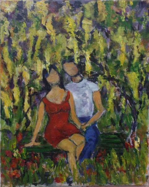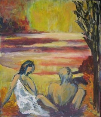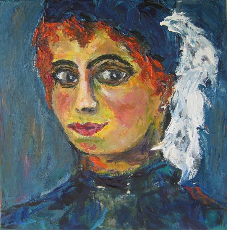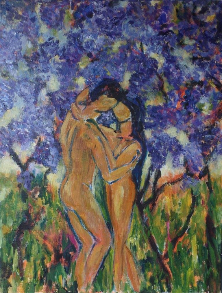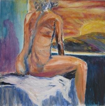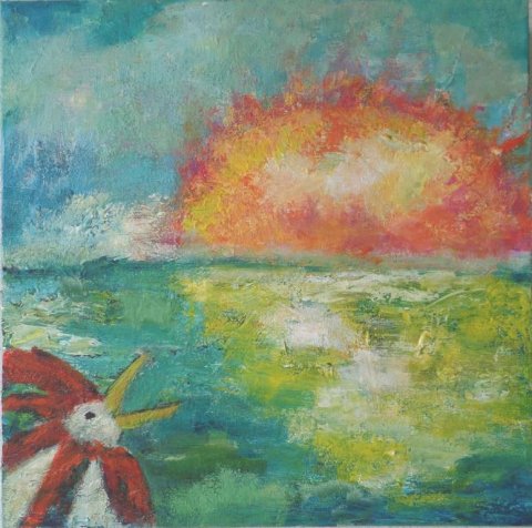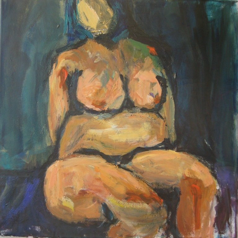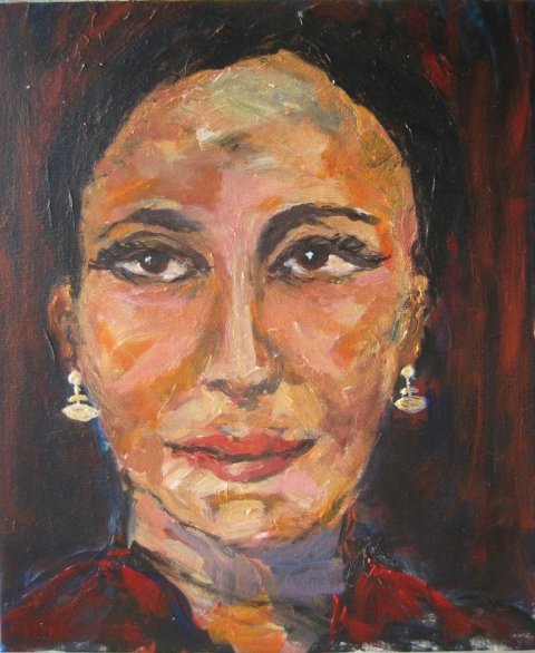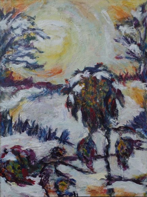 Kvinde på rød. 40 x 50 cm. Doneret til og ophængt på European Art [...]Museum i Vinderup ved Frederiksværk.Læs mere...↑ |  |  Blå måne. 60 x 60 cm. Solgt. |