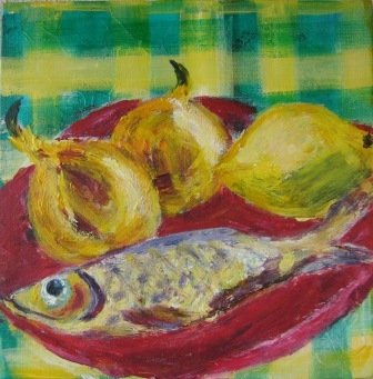 Stilleben - Fisk. 30 x 30 cm. |  Stilleben. 50 x 50 cm. Solgt. |  |