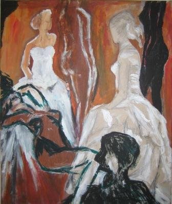 Tykke Bertha. 50 x 50 cm. Solgt. |  |  Tre er en for meget. 60 x 70 cm. Solgt. |