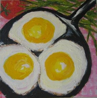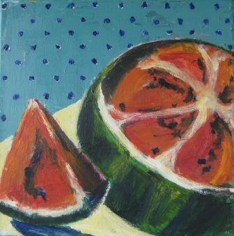 Stilleben - Spejlæg. 30 x 30 cm. Solgt. |  Stilleben 2012. 40 x 40 cm. Privat eje. |  Stilleben - Melon. 30 x 30 cm. |