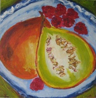 Stilleben - Netmelon. 30 x 30 cm. |  Stilleben - Hot. 30 x 30 cm. Solgt. |  Stilleben - Frugt. 30 x 30 cm. |