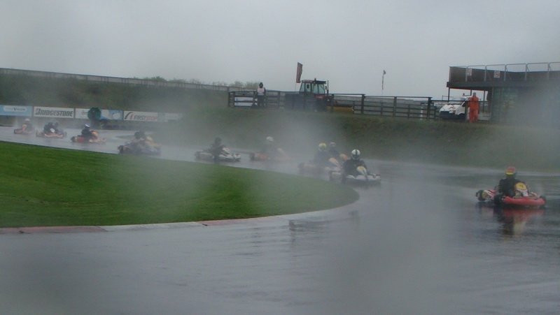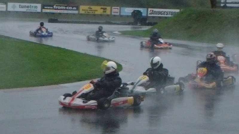 Der blev kørt pænt, selvom der mange steder - for ikke at sige på næsten hele banen - stod blankt vand.