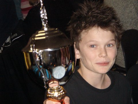 Thomas Højer fremviser stolt beviset på klubmesterskabet.