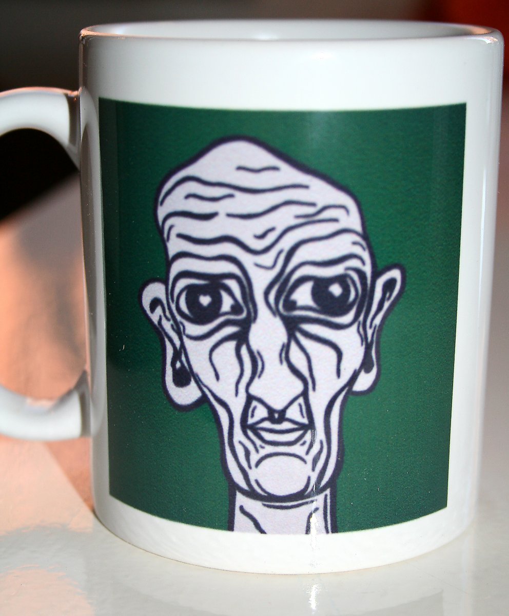 Hvide keramiske 0,3 l. krus med mine kunstmotiver. Tåler at komme i opvaskemaskinen.
