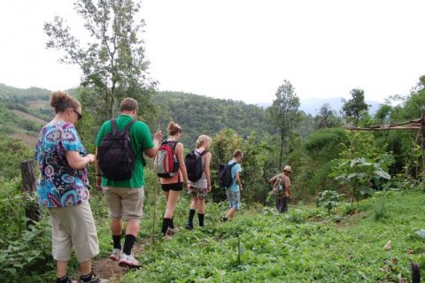 Our guide Pot taking a break while the rest of us were enjoying the waterfall