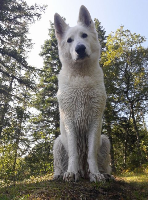 Csilla :D Hun er bare et kapittel for seg selv. Hun er meget aktiv og lærevillig, og den gøyeste hunden å trene. Hun er "rampete" og veldig "pratsom", men veldig snill. Hun er den som elsker å være på treningsbanen og trekker meg opp bakkene når jeg tror jeg ikke klarer det :D Hun har bestått BH og SL2, så nå trener vi mot SL3 og IPO1 :D