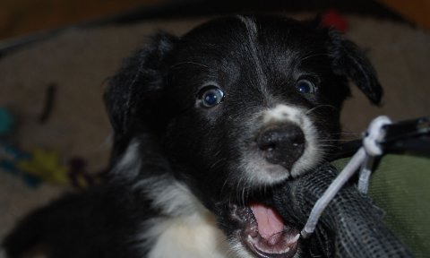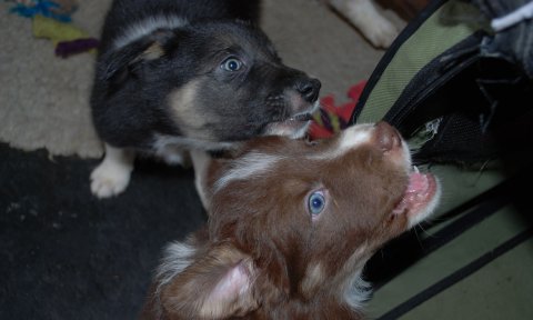 Hvalpene afprøver deres tænder i stor stil - helt efter bogen - uha de er spidse... Alt skal undersøges og afprøves med tænderne. Alle har det godt og er fulde af løjer. Har taget lidt billeder af krokodillebanden som du kan se herunder.