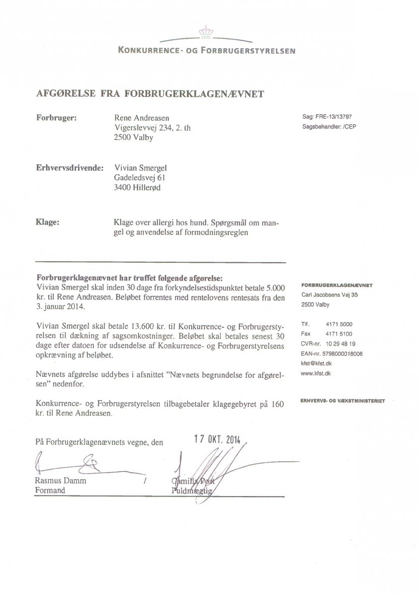 Sælger er nu blevet dømt i Retten i Hillerød og har ikke efterkommet betalingsfristen på 14 dage