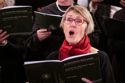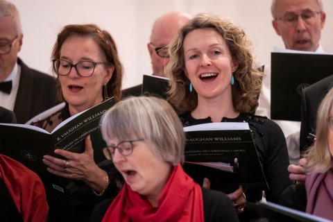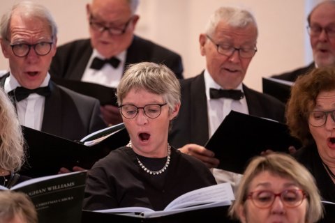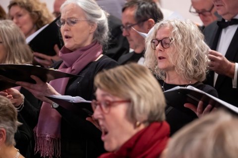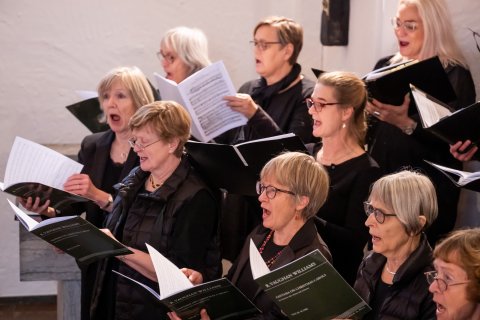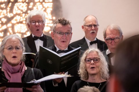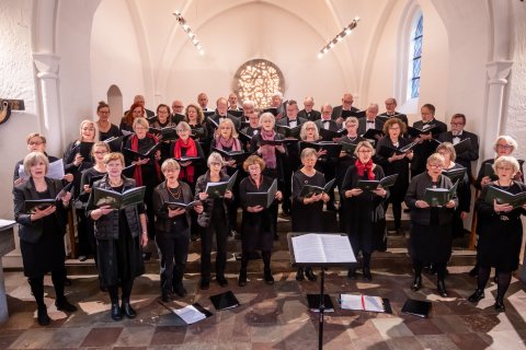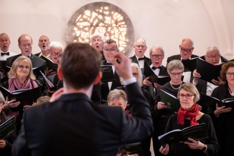 Koret øver og giver koncert i Jægersborg Kirke d. 11. december 2022 under ledelse af korets nye dirigent Leon Reimer (Fotos taget af fotograf Kim Matthäi Leland)