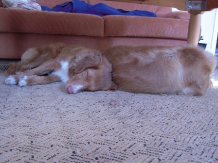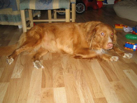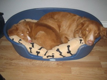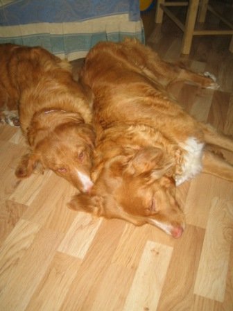 16/8-09: Tony har indtaget Frejas kurv |  26/7-09: to trætte hunde efter træning |  16/10-08: Freja er ved at blive godt tyk og træt |
