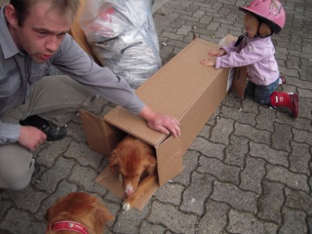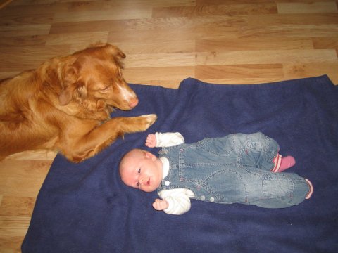 29/8-09: Aslan og Freja er meget trætte |  30/8-09: Anne lærer Aslan at kravle gennem en papkasse |  Freja og Aslan i sneen december 2010 |