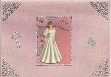 3D motiv med 3 lag på elegant lyserød kort og med sølv hjørner.