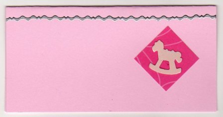 Med lyserød gyngehest på pink baggrund og med sølv kant.